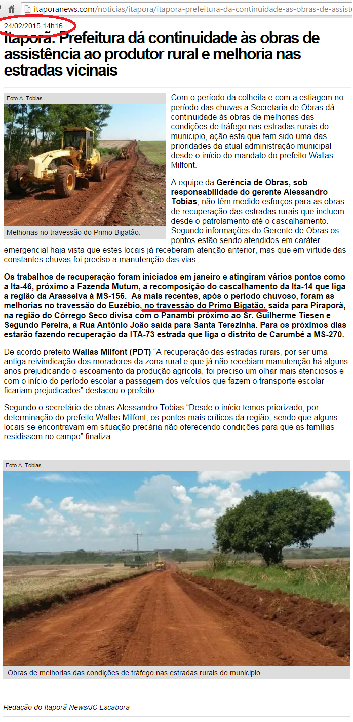O produtor se referiu a algumas publicações feitas pela assessoria de imprensa da prefeitura e por sites parceiros da administração. Uma foi dia 24 de fevereiro deste ano e outra quatro meses mais tarde.